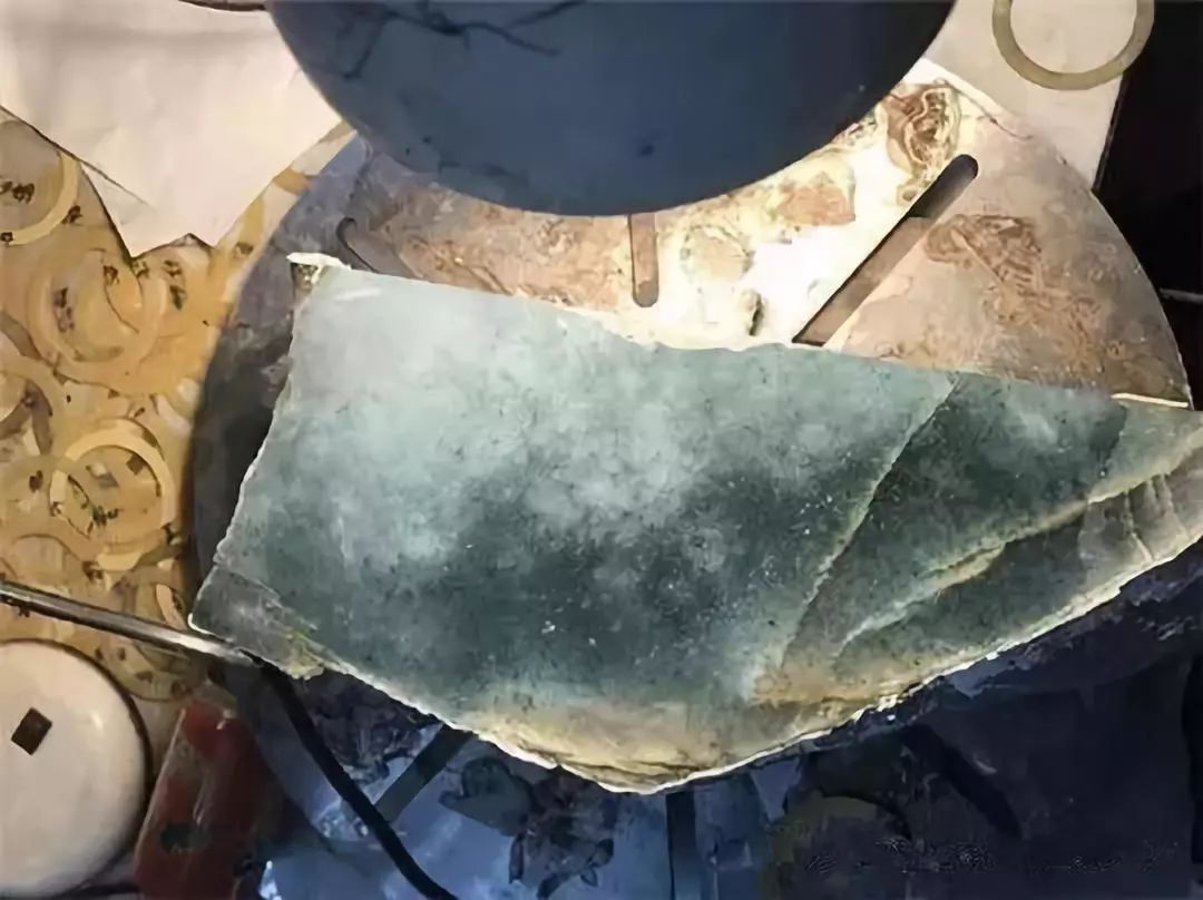 像这样料子还有好几片,小裂很少很少,大裂也一丝不影响手镯圈的位置,手镯能出一堆是没问题了,再想想手镯芯和边角料,小珠真的是口水流了一地。