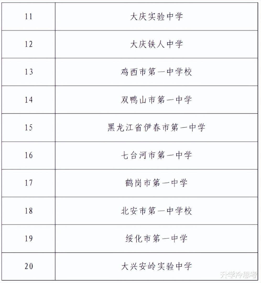 具体来看,既有多所中心城市省重点高中入围,也兼顾多所县域重点高中。比如哈尔滨市的哈三中、哈师大附中,大庆市的大庆实验中学、大庆铁人中学,佳木斯一中、牡丹江一中、齐齐哈尔实验中学等著名省重点高中均入围名单。非省重点高中里,哈工大附中成功入围。