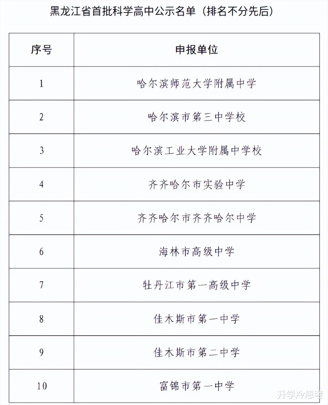 从黑龙江省首批科学高中公示名单看,兼顾教育公平的倾向十分明显,笔者判断,未来科学高中不仅会面向更多优质省重点高中,也会对教育发展薄弱区域和学校给予适当倾斜。本文由《教育冷观察》《升学冷思考》原创,笔者所持观点不构成对任何个人、组织的绝对判断和建议,请您审慎参考,笔者和发布方不承担任何责任。如需转载,请与笔者联系,侵权必究。欢迎您点赞、吐槽、转发、评论。