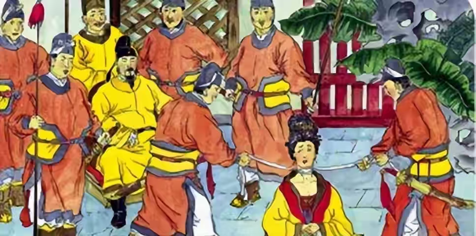 杨贵妃满眼惊恐与无助,被迫饮下毒酒,这位曾经集万千宠爱于一身的绝代佳人,就此香消玉殒,只留下无尽的遗憾与哀愁。