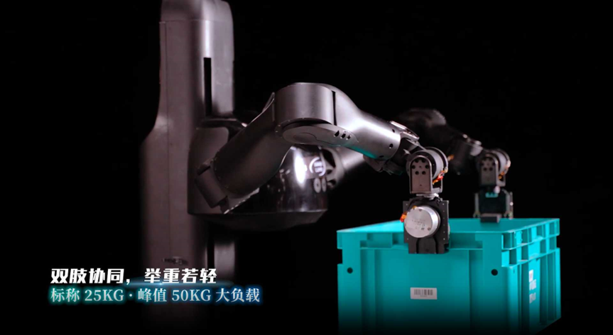 当前全球双臂机器人行业,主流产品的双臂负载大多集中在12kg以内,即便是针对性研发的重载机型,也很难突破30kg的门槛。这就导致工业、物流场景中,大量30-50kg的标准周转箱、重型零部件,依然需要依靠人工搬运,存在效率低下、安全隐患,成为行业发展的瓶颈。