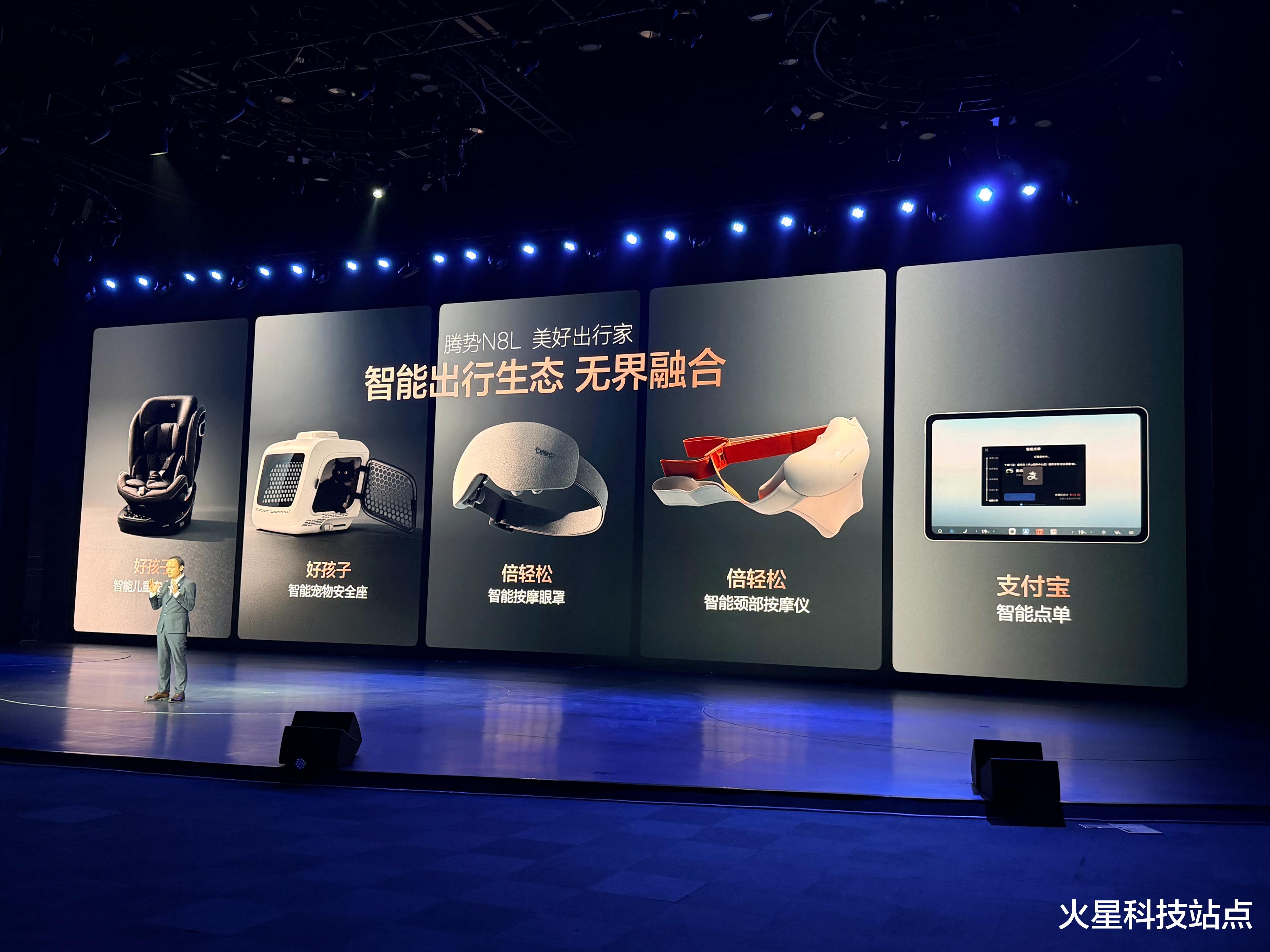 然后在智能化方面,腾势N8L搭载了带激光雷达的天神之眼B,得益于比亚迪最大的车云数据库,它拥有着更快的算法进化,其不仅支持车位到车位的智驾功能,而且还支持所有自动泊车事故全部兜底,属于行业一流水平。其次,腾势N8L还用上了20扬声器1600瓦的帝瓦雷音响系统,为了对得起这套系统,腾势还联手QQ音乐,提供臻品母带级无损音源,音质效果比其他百万级BBA都要更好。然后,腾势这一次也推出了车家互联的概念,如今已经打通了美的的全场景智能家居,腾势和小米一样,也可以完成智能家居的联动,并且还提供了智能安全座椅,智能宠物安全座,车载游戏手柄等更多生态,并且还会持续开放更多功能。另外,它还支持手势开门,智能点单,专属卡通形象,车机互联功能,所以在智能化方面,腾势全部都与时俱进的跟上了。