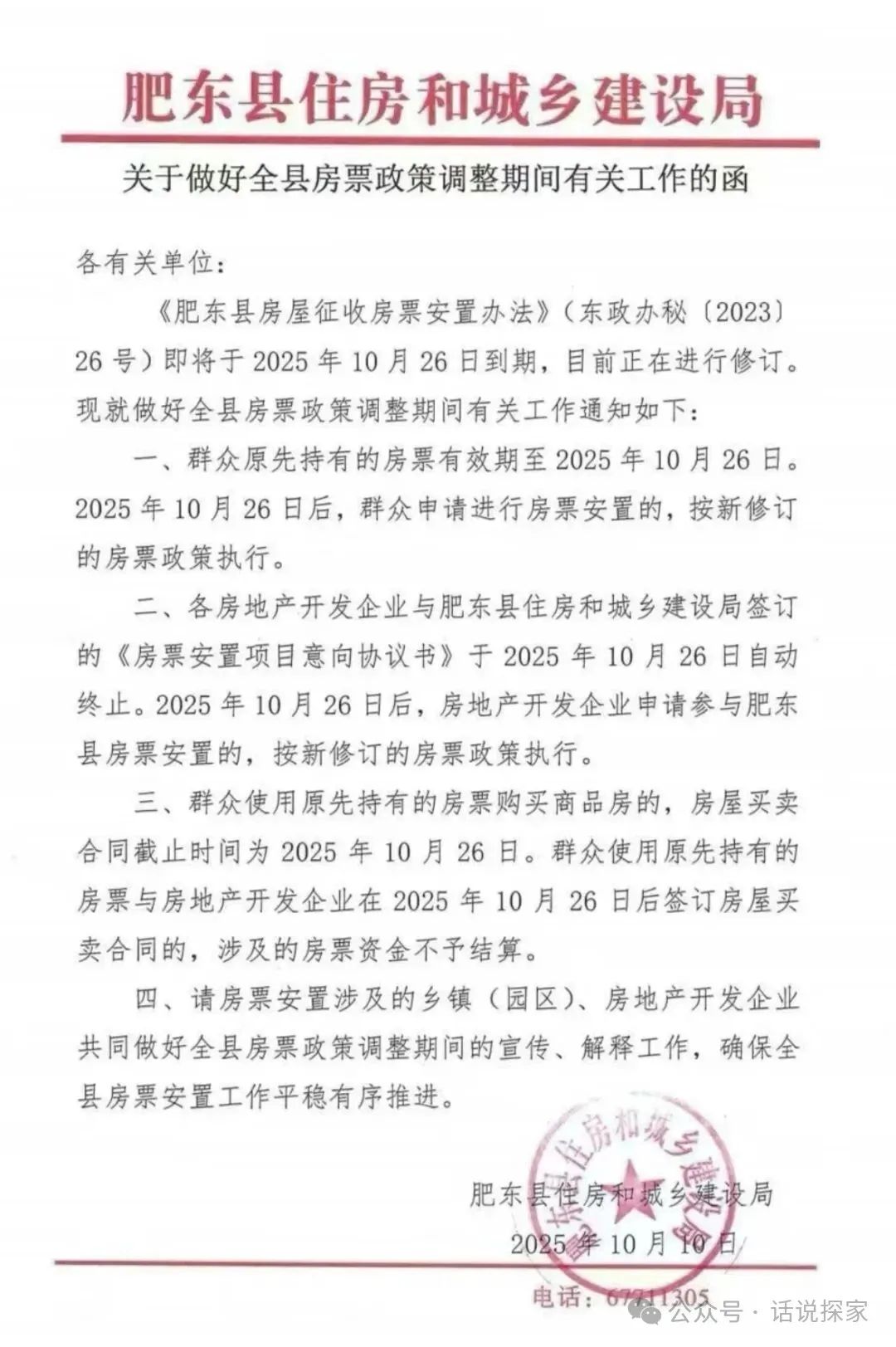 根据最新消息称,肥东房票即将终止,再不用就不结算了,即将到期并正在进行修订。