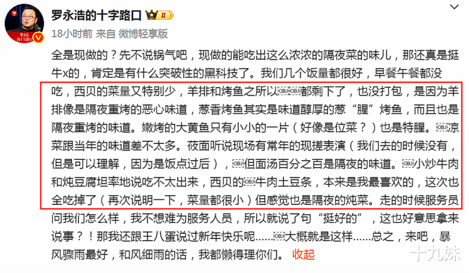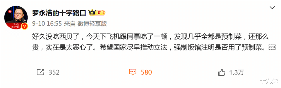 这句话的重点其实在最后一句上,但被很多网友解读成了“罗永浩反对预制菜”。实际上,他并没有对预制菜提出明确的反对意见,而是强调使用了预制菜的饭店应该向消费者说明。