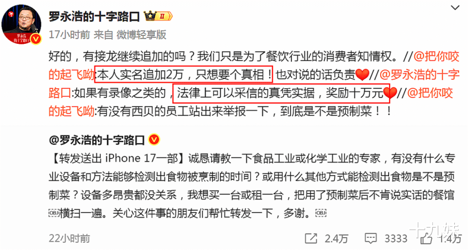 双方你来我往,见招拆招,让我一度恍惚地以为双方是在演剧本搞流量,毕竟黑红也是红。直到今天罗老师开始悬赏10万全网征集西贝的预制菜证据,我才知双方是真的“杀红眼”了,这个梁子算是结下了。