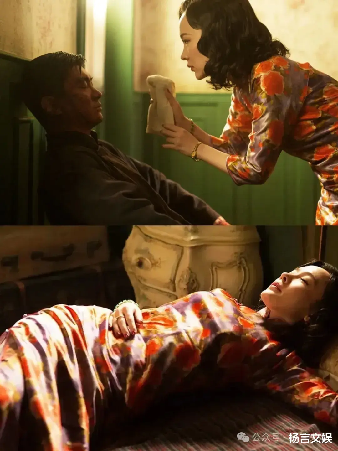 电影中的旗袍从来不是单纯的服饰符号。小六从镶满水钻的戏服到粗布棉袍的蜕变,是消费主义罗曼蒂克向生存主义现实的坍缩。渡部的和服与西装交替出现,在虹口料理店的榻榻米上完成身份撕裂,寿司刀划开鱼腹的寒光,与军刀刺入身体的弧线形成残酷互文。最具颠覆性的是"童子鸡"的符号解构:当处男血与战场血在妓院床单上混合,纯真与罪恶的界限在血色中彻底消融。