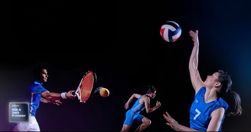 体育赛事的魅力,往往体现在毫厘之间的胜负角逐中。球员冲刺的荣耀瞬间、球体旋转的每一道轨迹,都需要清晰地呈现在观众眼前。三星AI电视以强大的AI芯片为核心,为画质提供坚实算力支持,让体育赛事的每一个细节都能逼真还原。其中,2025年全新旗舰级Neo QLED 8K QN950F,搭载新一代NQ8 AI Gen3芯片,具有8K AI影像增强Pro技术,能将低分辨率的现场直播内容提升至接近8K分辨率,让用户不错过赛事里的任何关键细节;其AI动态增强Pro技术则可以优化快速运动画面,使田径赛场的冲刺、足球场上的攻防等高速场景更流畅,减少动态模糊,确保画面丝滑无拖影。