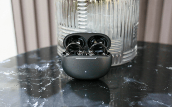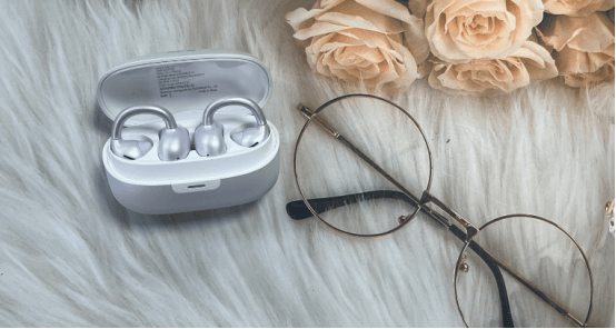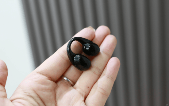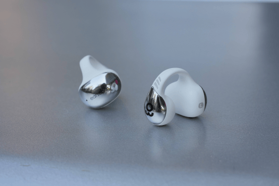 佩戴体验:佩戴设计非常人性化,耳夹部分像袖扣一样贴合耳朵,整体重量很轻,长时间佩戴也不会觉得累。发声单元与电池仓之间通过涂有超软硅胶的特殊柔性带连接,这种设计不仅让耳机能稳固地适配不同耳型,还大大提升了佩戴的舒适度,柔软的材质能减少对耳朵的压迫感。即便是戴着眼镜、帽子或者有耳部穿孔饰品,也不会受到影响,几乎让人忘记耳朵上还戴着耳机,非常适合需要长时间佩戴耳机的场景。