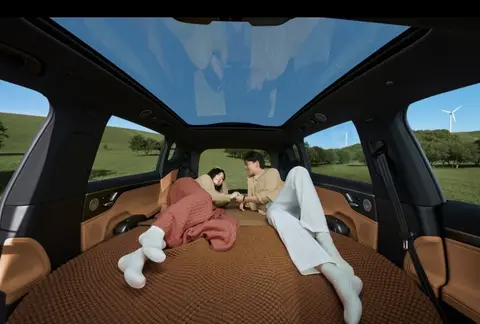再看看空间方面,smart #5 EHD超级电混延续“紧凑于外、宽适于内”的空间理念,得房率高达85%。虽然车长不到4.8米,但轴距做到了2.9米,后排很宽敞,头顶也不压抑。储物方面,新车配备625L-1525L可变后备箱与32处储物空间。后备箱常规状态有625升,后排座椅放倒后能扩展到1525升,地板平整,出门装行李或者露营装备都够用。此外,全车还有32处储物空间,比如中控台下的抽屉、门板上的分层杯架,随手放手机、水杯都很方便,这些设计不算惊艳,却是家庭用车的刚需细节。