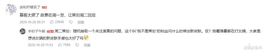 王者荣耀策划是会在周二固定直播回应玩家问题的,除了出现了人机加成20%的特殊情况,磊哥的视频是在周一发的,也是有点挑衅王者策划的意思。