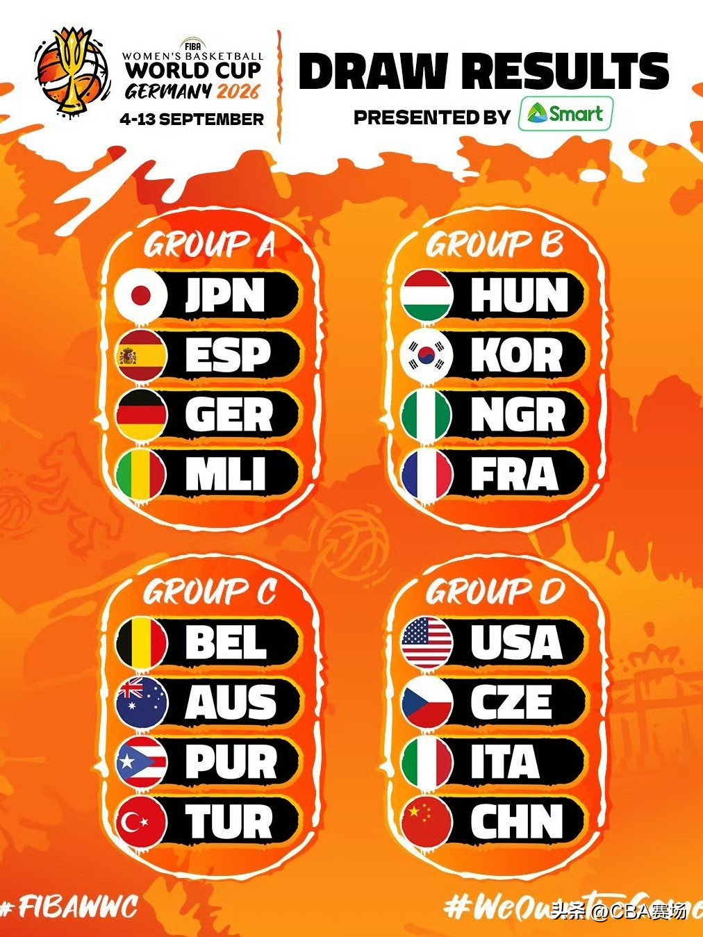 北京时间4月22日凌晨,在德国柏林完成了2026女篮世界杯的抽签仪式,16支队伍被分配到四个组。中国女篮被选入D组,同组的对手有美国、意大利、捷克,堪称本届的死亡之组。