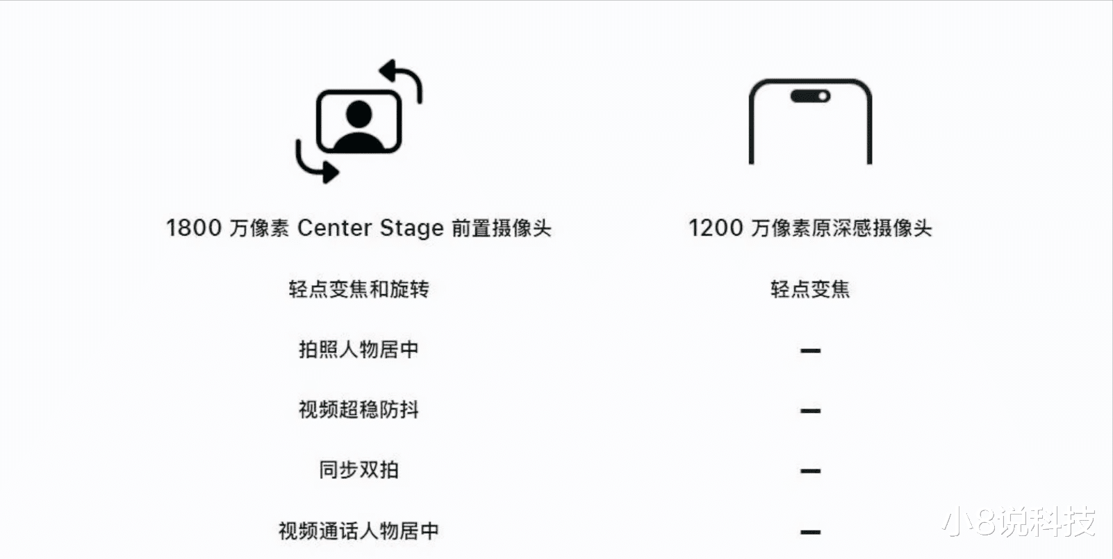 我仔细研究了一下。iPhone17 Pro 的前置相机,已经换成了 1800 万像素的 Center Stage 镜头,支持人物居中、轻点变焦、同步双拍等功能。