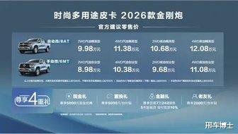 10月22日,时尚多用途皮卡——2026款金刚炮在荆门智慧工厂焕新上市。金刚炮8AT车型,官方建议零售价9.98万元起;金刚炮6MT车型,官方建议零售价8.98万元起。并同步推出5000元现金礼、5000元置换礼、2000元老友礼以及7万24期0息金融补贴四重豪礼。