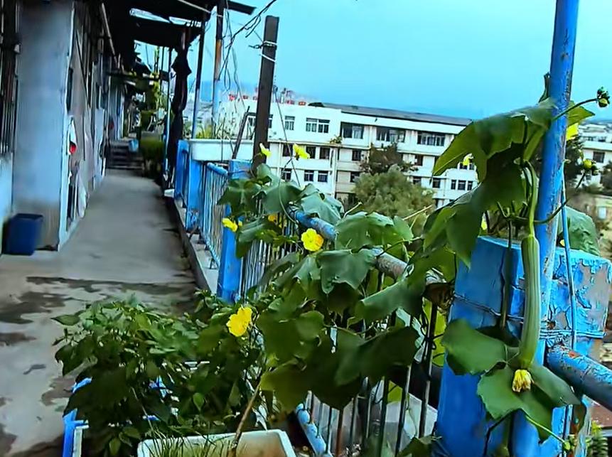 看这茄子,长得多好,这丝瓜真是很嫩。退坡窑洞是国家工业遗产,不能拆迁。这里的住户,其实只有使用权,并没有所有权。所以,也就没有卖了旧房,换新房的可能。
