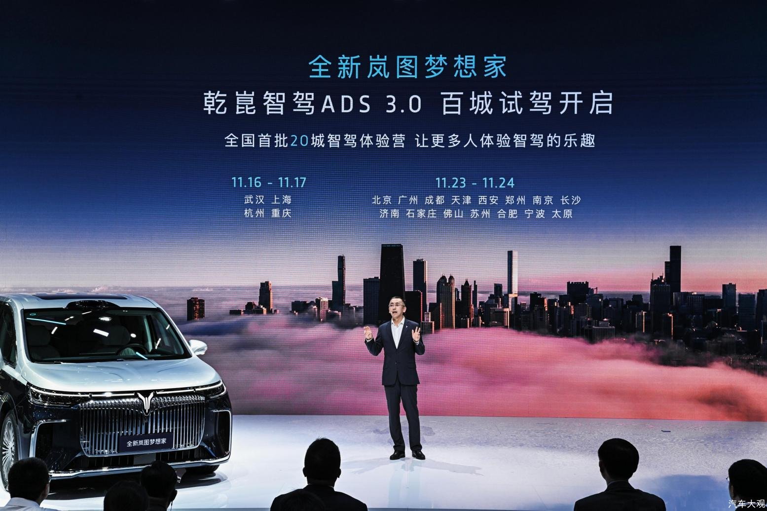 为让更多用户深度体验全新岚图梦想家乾崑版领先一代的产品魅力,全国首批20城智驾体验营火热开启中,11月16-17日在武汉、上海、广州、杭州等地,11月23-24日在北京、成都、天津、西安等地,用户可以通过岚图汽车官网、APP、公众号及小程序预约试驾。