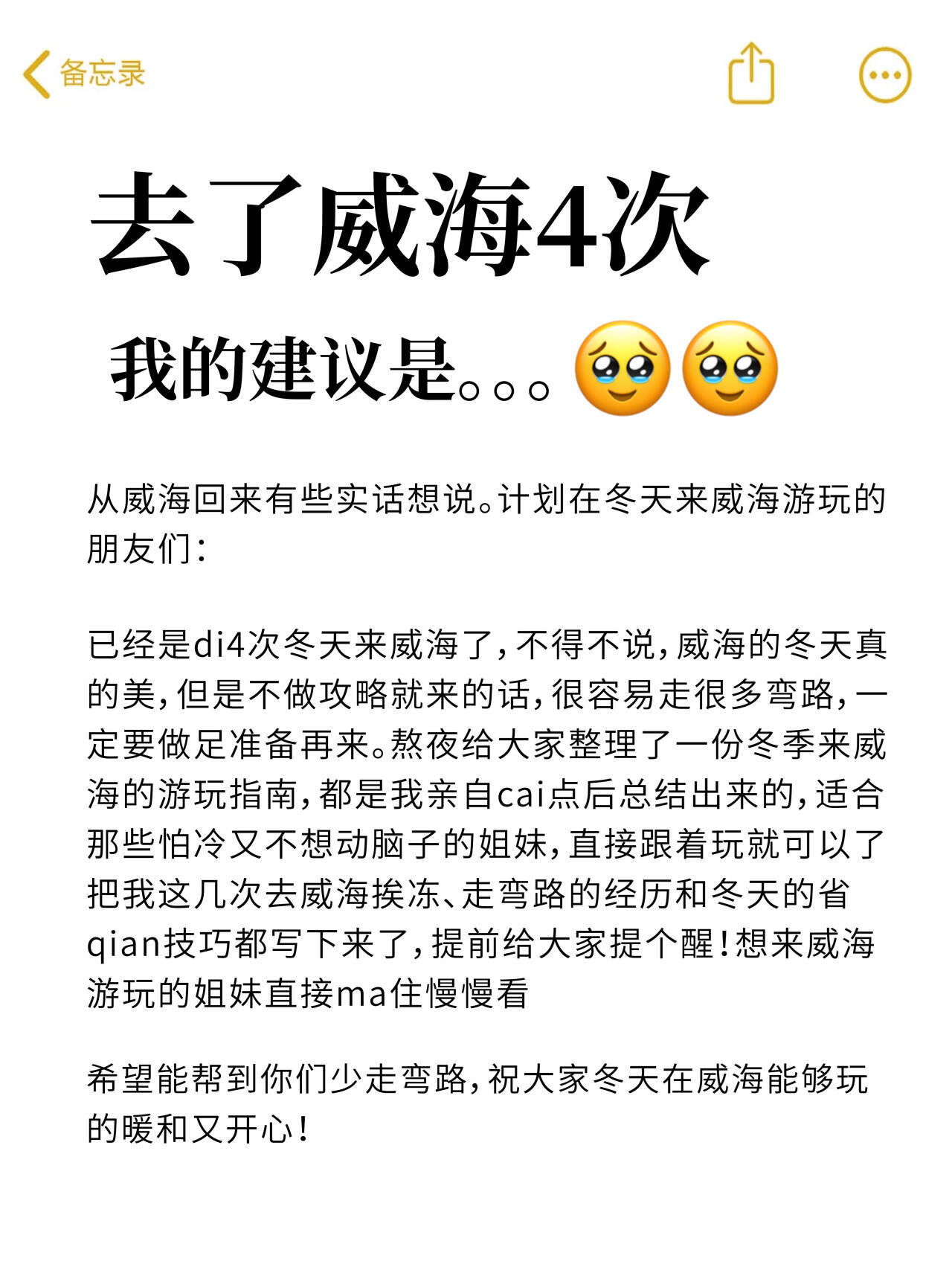 去过4️⃣次威海了,更喜欢威海冬天❄️,人少,景色美,看着海🌊,特别惬意