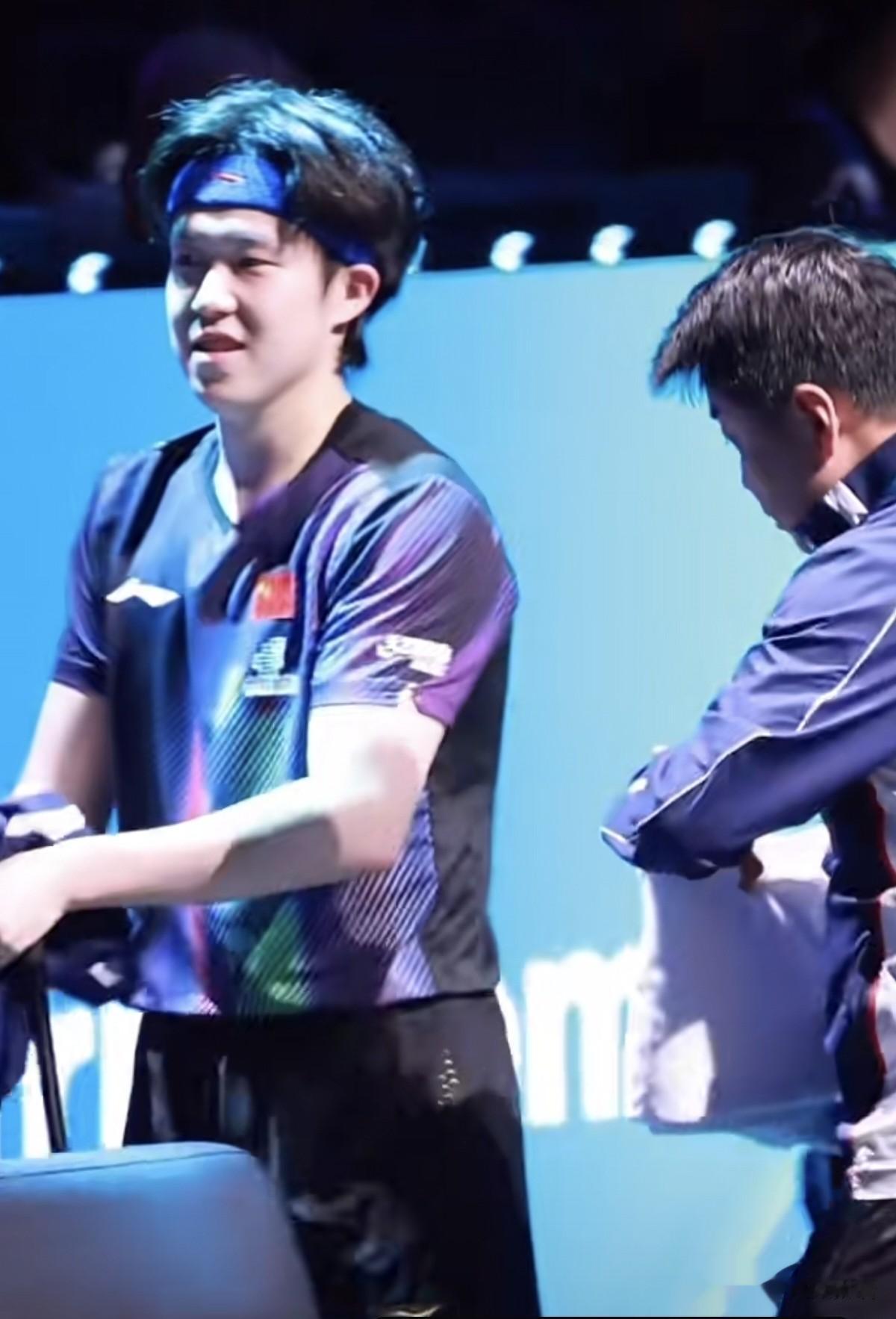 恭喜王楚钦晋级男单16强,小组赛两轮比赛都是3-0赢了,赛后王楚钦边收拾球拍边和王皓教练复盘。今天楚钦戴了蓝色发带,这样看他的头发确实挺多呢,赢下比赛后的楚钦也露出了笑脸。