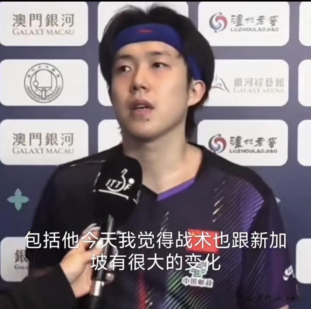 王楚钦打完比赛后,也接受了采访,对于卢伟今天的发挥,王楚钦说:“今天他的发挥要比新加坡更好一些,包括第2局也是他领先嘛,自己也是赢回来以后,觉得到了第3局也是打的更释放了很多。包括他今天我觉得战术也跟新加坡有很大的变化,无论是发球还是接发球这种体系上来说都有不一样的感觉。”