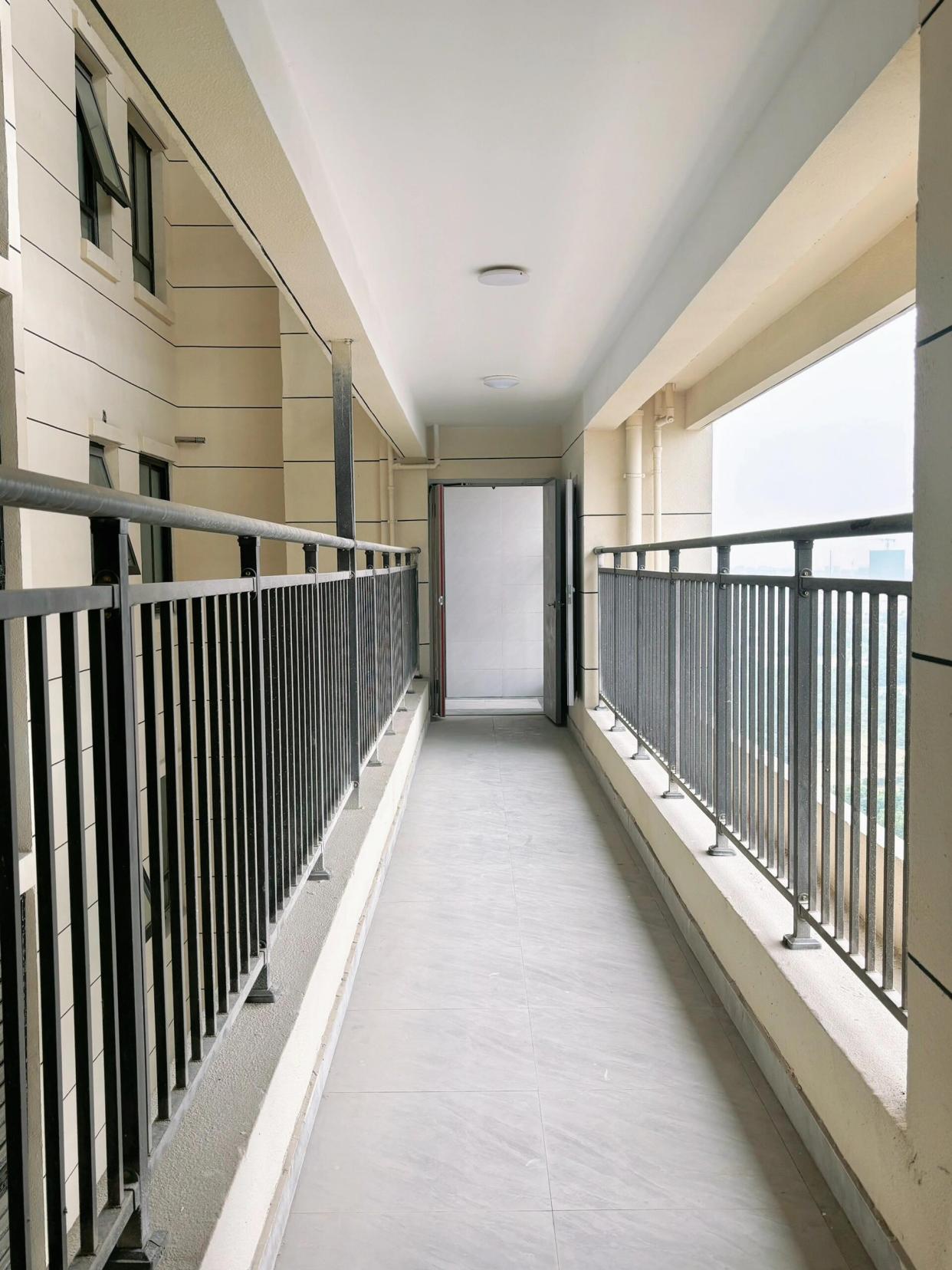 如果是买的连廊中间户,窗户正对连廊的,可以装窗帘,或直接在玻璃上贴防窥膜。这样就不用担心从连廊路过的人看到屋里,住得特别安心。
