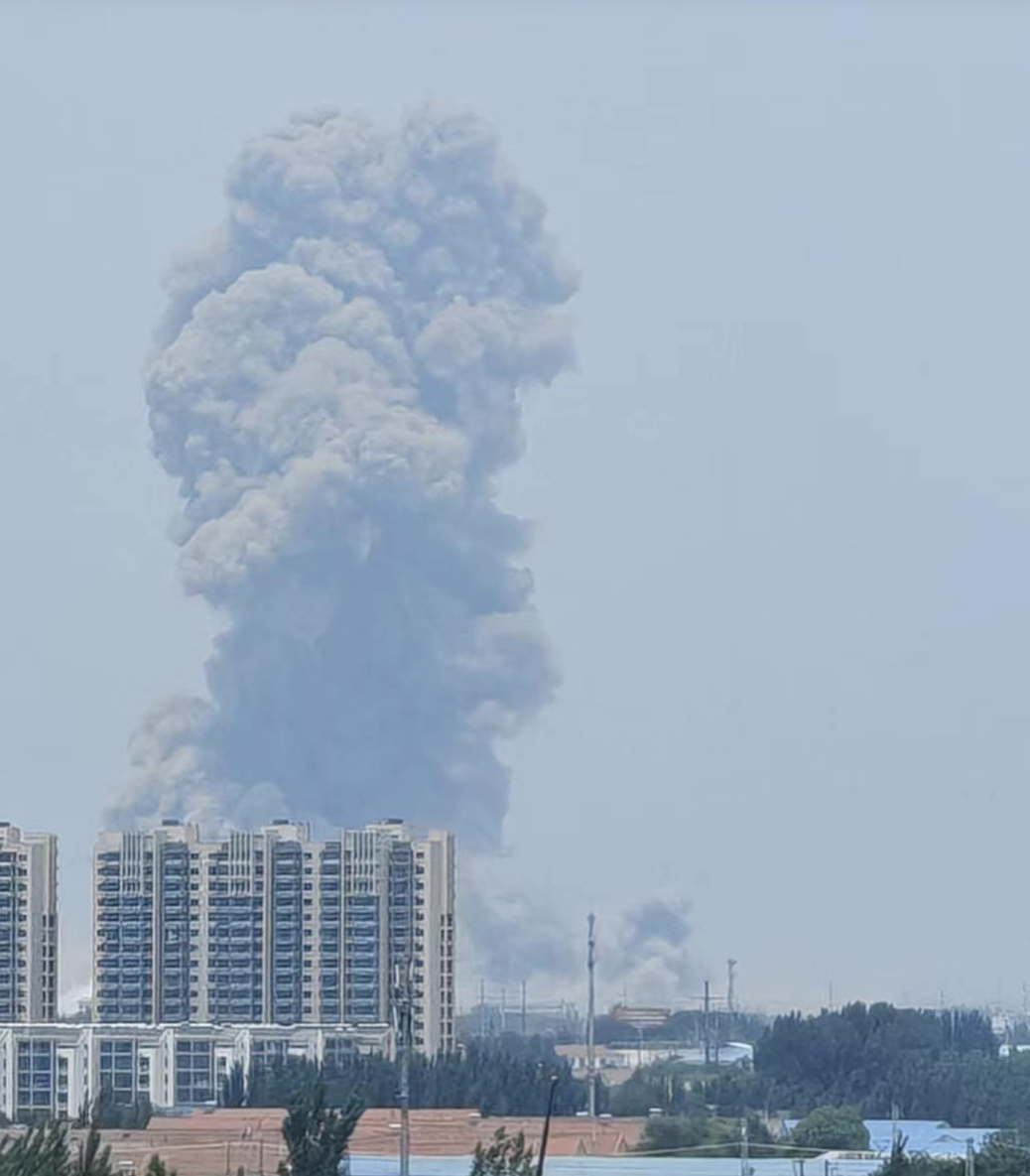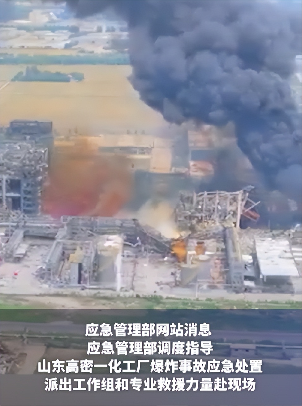 从网络上流传的航拍画面可以看到,爆炸中心区域建筑严重损毁,钢结构厂房扭曲变形,部分屋顶被完全掀翻。事故发生现场有大量的黑烟腾空而起,同时还夹杂着大量的橙黄色烟雾,瞬间笼罩了厂区上空。