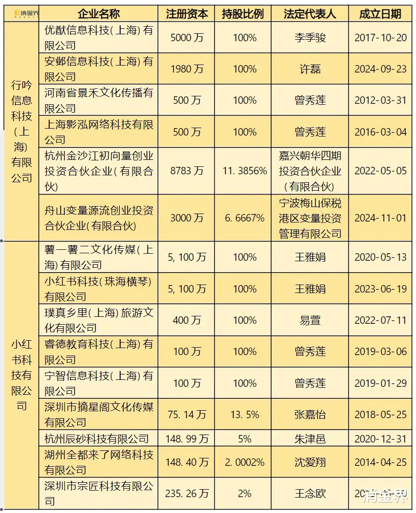 小红书对外投资主体