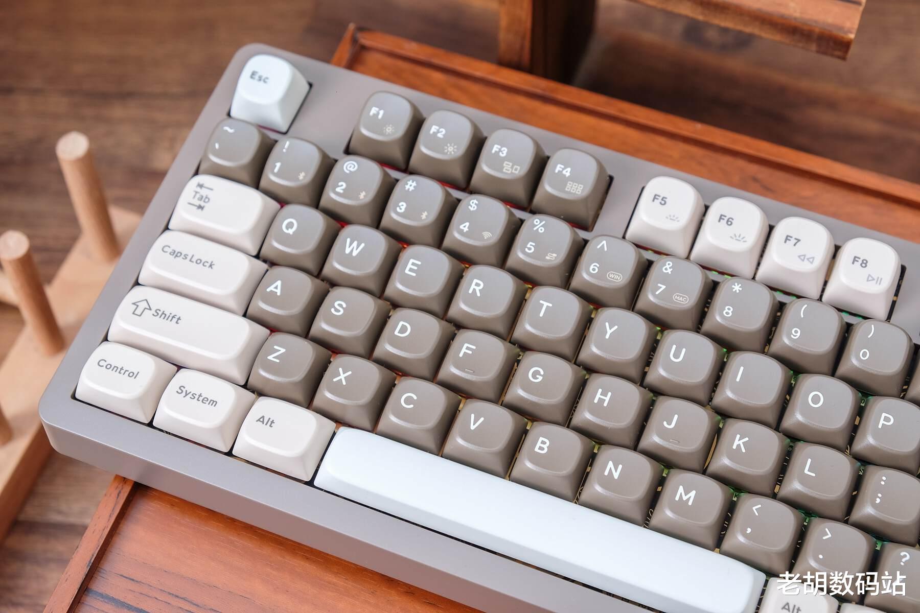键帽方面,它选用PBT双色注塑键帽,MDA高度贴合指腹。这不仅带来了舒适干爽的触感,更实现了字符清晰恒久的耐用品质,从根本解决了打油与磨损两大痛点。