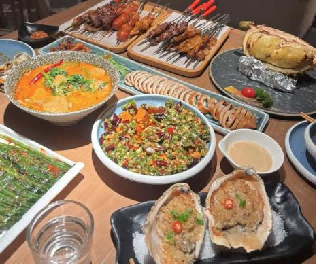 必点芭比Q大肉串!肉块超大超实在,烤得滋滋冒油,香到隔壁桌都流口水!重点来了!麻辣小煮+烤肉+甜品+饮品全都有!选择困难症不怕了