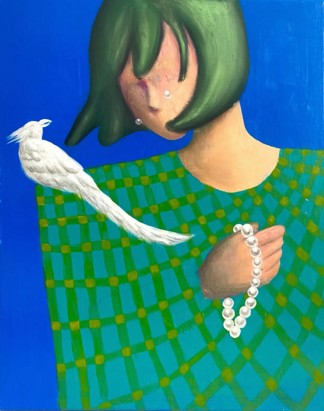 程菲菲 《珍珠是你的眼泪》 油画棒 40×50cm 2025