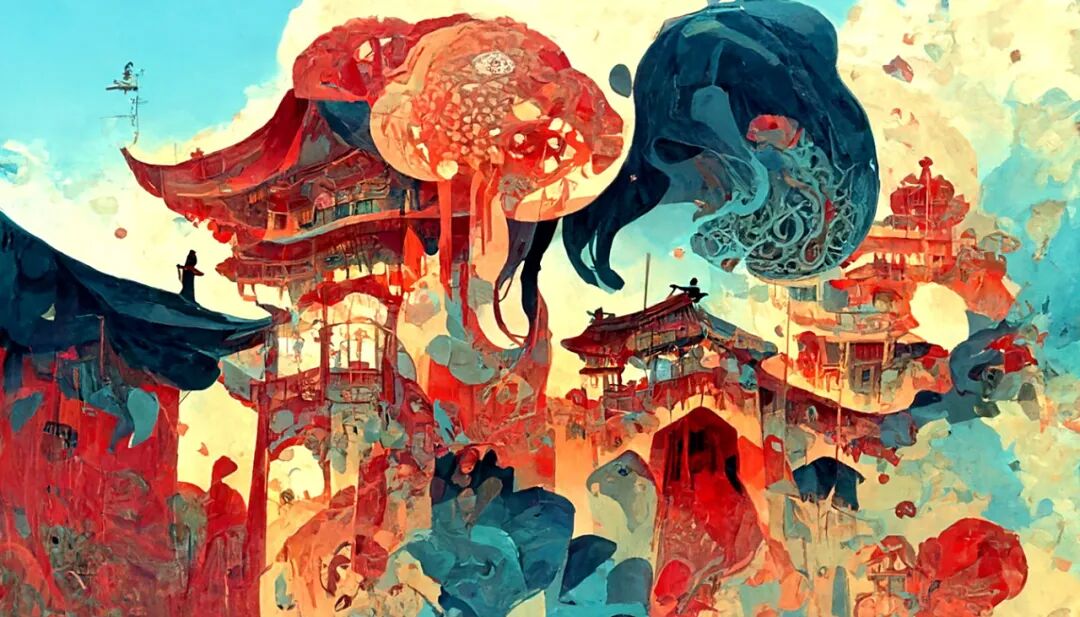 徐燕屏(徐小涵),我尝试油画颜料在纸本上用力刮蹭形成的肌理;也尝试雨露麻上油画(和丙烯)颜料流淌时的肆意洒脱和攥紧笔头描摹线条的刻意收敛;现在更多尝试综合材料在我最爱的众多“山水图系列”里融入变幻。至于画面色彩,渐渐不变的就是心中追求的古风色调才能让我的马面裙和我的画彼此和谐美丽了。
