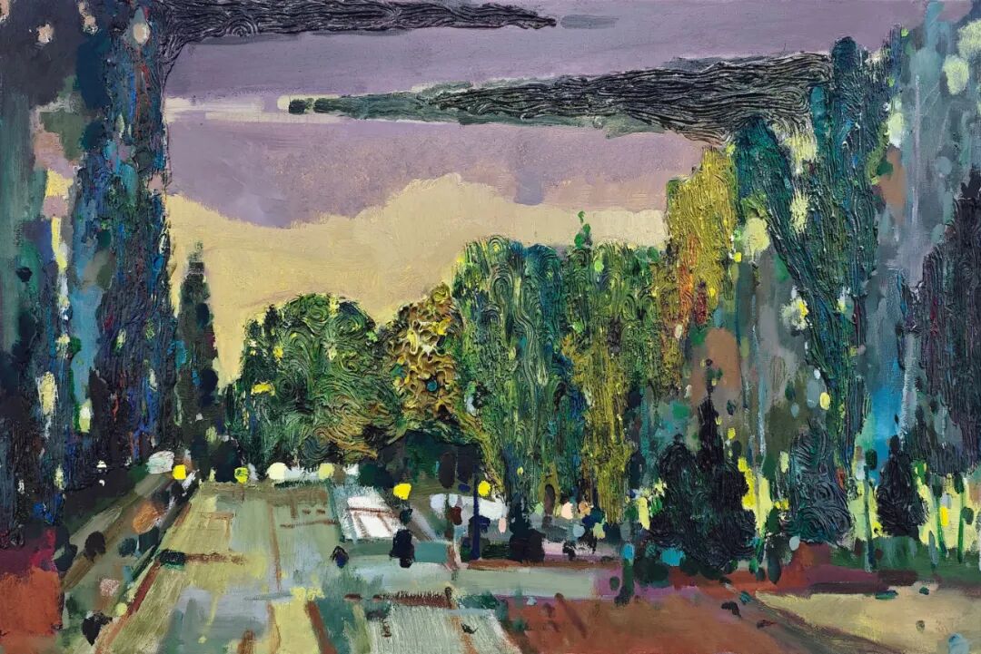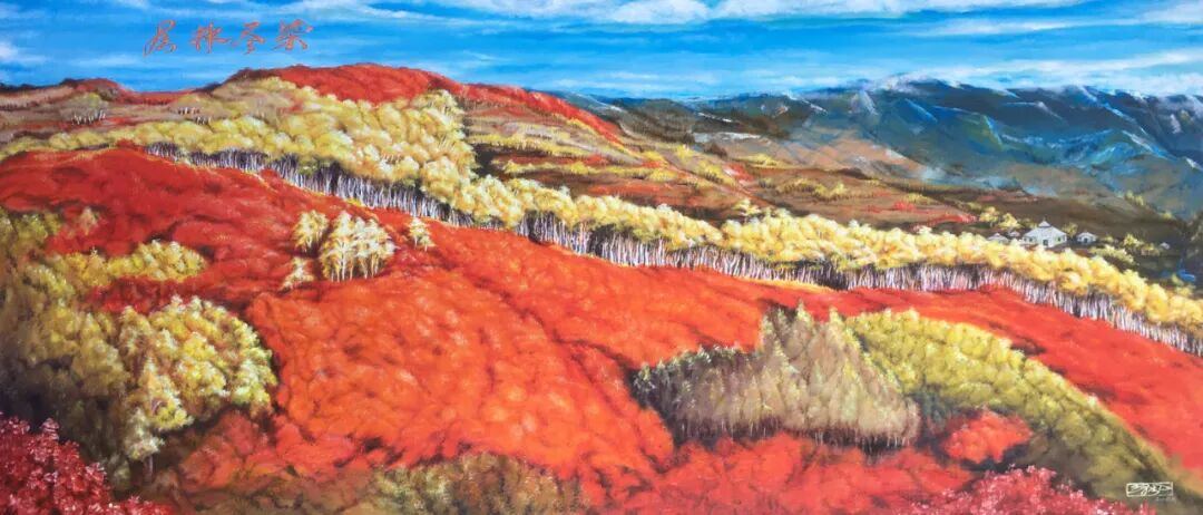 梁风 《层林尽染》 布面油画 79×181cm 2024