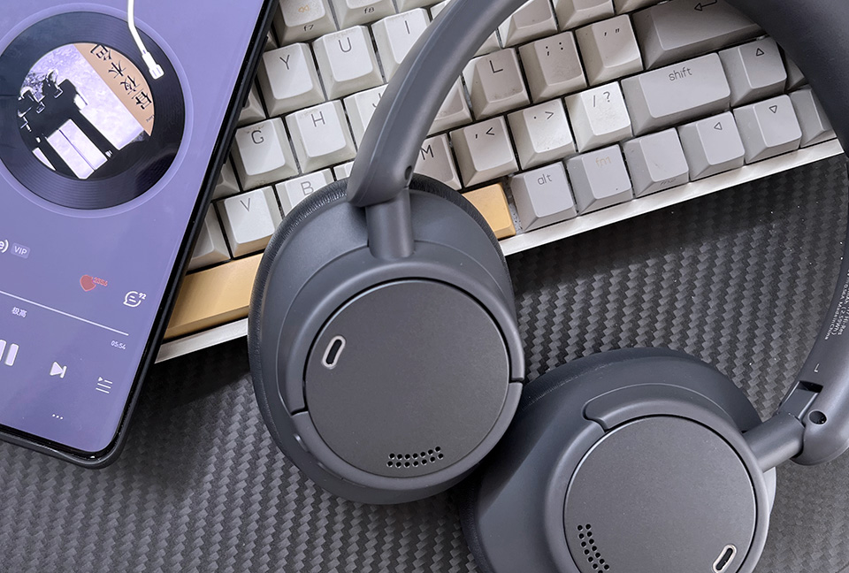 H7的操作台集中在右耳罩上,分别是多功能键——开关机、暂停音乐,+/-键——音量调整、音乐切换,ANC键——降噪开关键,充电口以及音频线口都位于右耳罩上;