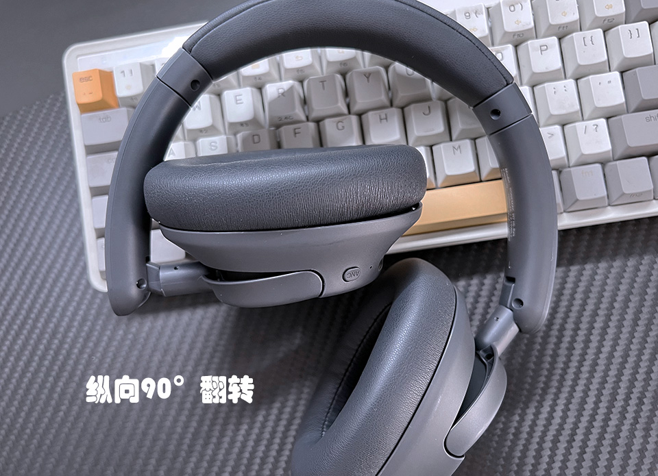 左右耳罩都支持90°的横向和纵向的反转,转向,