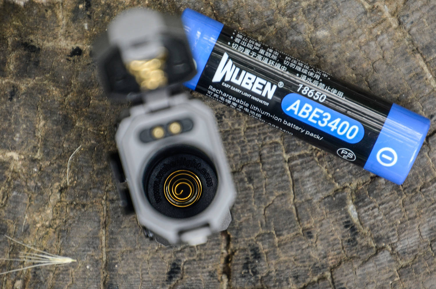 按照提示解锁后,按压内凹箭头这一边,可以弹开尾盖,也就能取出电池,这是一颗3400mAh的18650电池,可供主灯极亮1500lm使用3小时,RGB侧灯连续使用185小时,侧灯白光1lm档位,可以连续使用720小时,提供了足够的续航能力。