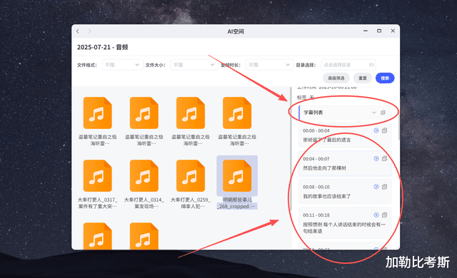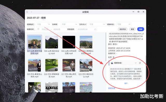 注意:视频它能够自动检索字幕以及对话,还能将对话自动转成的文本内容,进行语义搜索。音频,也是将对话自动转成的文本内容来进行检索的。这也是为什么AI空间扫描到后面为什么那么慢的原因。