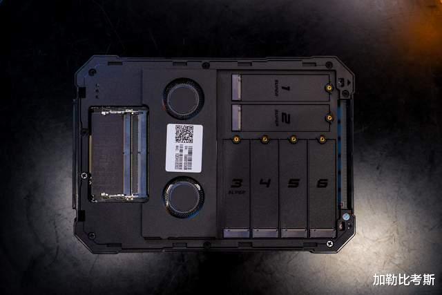 拆开外壳,可以看到6块硬盘的安装位置,内置16GB DDR5内存,拥有2个内存插槽,可以拓展。