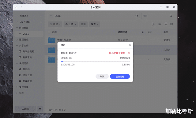 这个功能主要针对摄影师群体,比如刚拍完照片,立马插卡来个备份,实在是太方便了。贴启用即插即备后,可以快速备份外接设备文件。