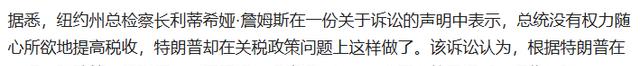 结果特朗普一征税,纽约州企业叫苦不迭,总检察长利蒂希娅·詹姆斯直接放话:总统没有权利随心所欲地提高税收。