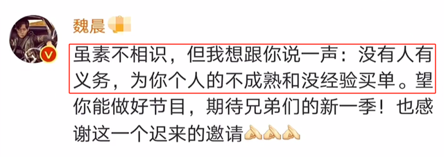 但魏晨的回复非常刚,直接对小林导演:没人会为你的不成熟、没经验买单。