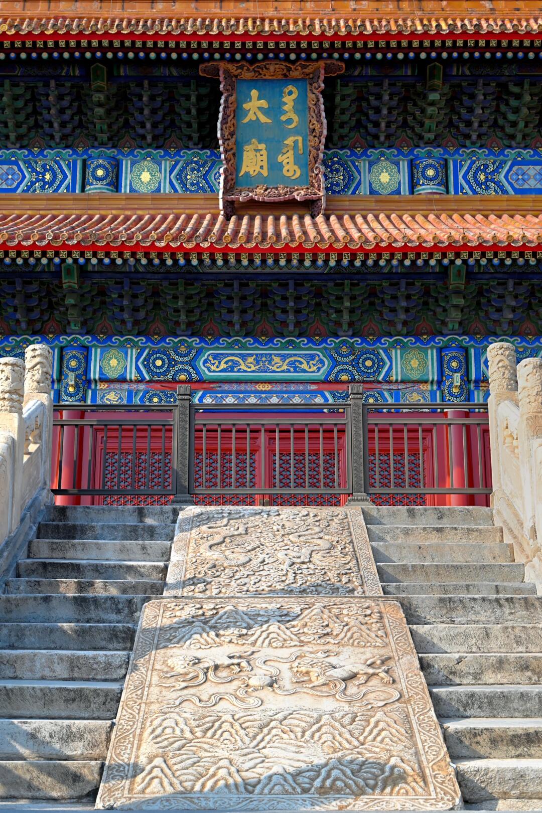 踏入太庙,首先映入眼帘的是前琉璃门,那精美的琉璃构件在阳光下闪耀着温润的光泽,绿、黄、蓝三色交织,勾勒出细腻而华丽的图案,宛如一幅凝固的织锦,每一处纹理都诉说着当年工匠们的精湛技艺与匠心独运。门旁的石狮子静静地蹲坐着,眼神威严而祥和,历经风雨洗礼,见证了无数往来于此的身影,守护着这片神圣的土地。