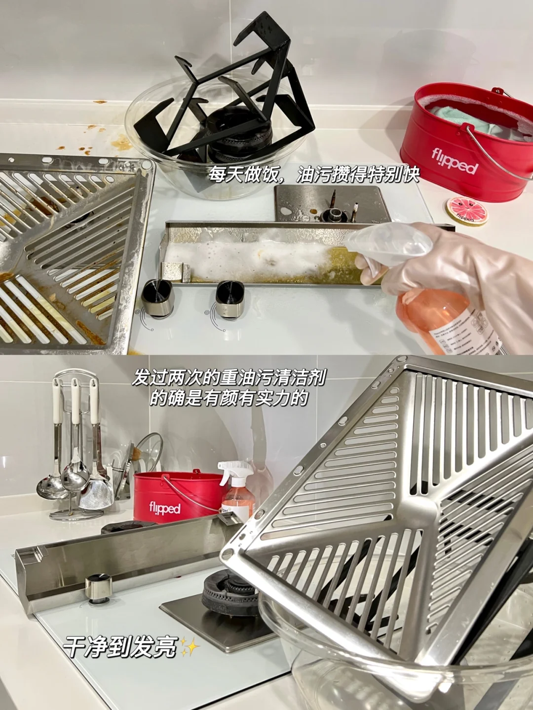 我家厨房有很多顽固油污,光是用洗洁精根本清洁不干净,结果尝试了一下油污净,效果真的惊艳我了!