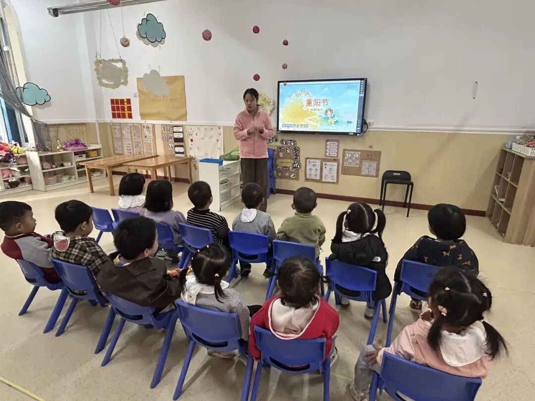 活动伊始,各班级开展了生动有趣的教学活动《重阳知多少》。伴随着朗朗上口的童谣,老师们通过生动的讲解与互动提问,为孩子们揭开了重阳节的神秘面纱。“为什么要尊敬老人?”“我们可以为爷爷奶奶做些什么?”孩子们在思考与回答中,初步理解了重阳节“敬老、长寿”的深厚文化内涵。