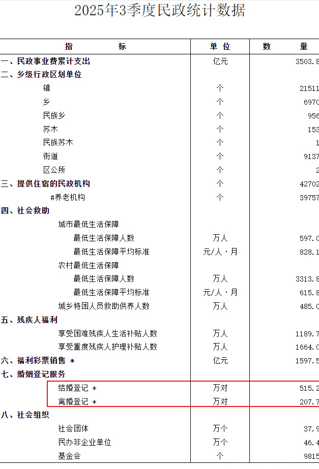 : 新浪财经. (2025). 今年前3季度结婚登记515.2万对