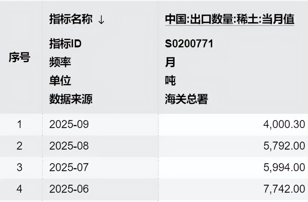 中国稀土6月份单月出口还有7700多吨,到了9月份出口已经4000吨,几乎是对半砍,