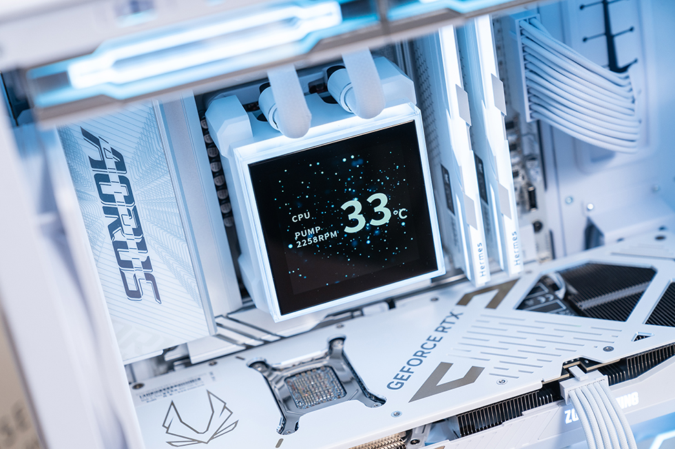 这款水冷采用侧置管路布局,配合服务器级波纹管材质,既保持了内径稳定和优秀的液体流动性,又能实现平滑弯曲,营造出近乎无管的视觉效果。创新的滑轨式管路夹具和滑动立式支架,可根据主板 CPU 位置微调水管走向,确保垂直对齐,适配不同机箱空间。