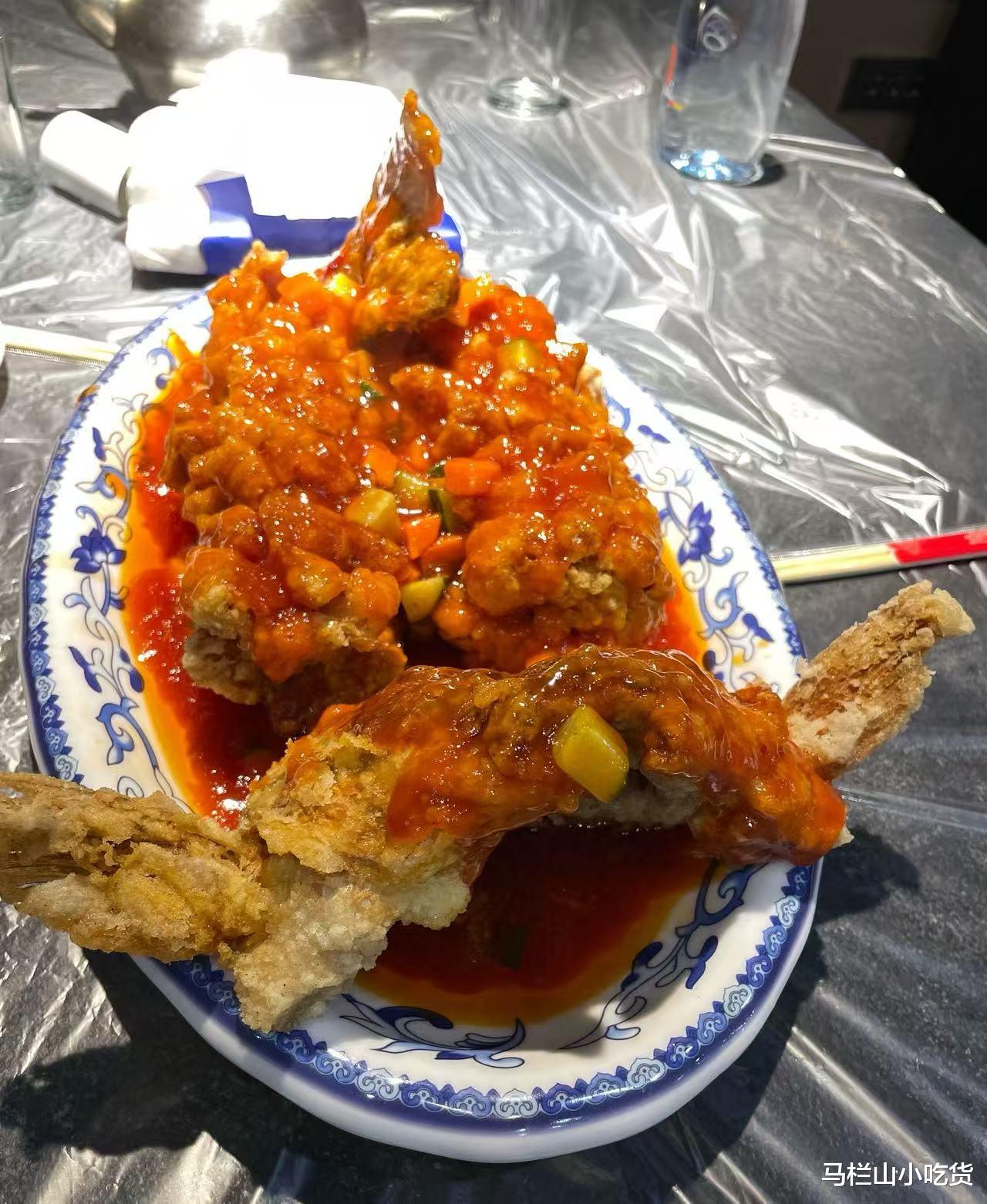 松鼠鲤鱼:鲤鱼鱼肉打了十字花刀,裹上面糊,直接炸制定型,起锅后,再淋上酸甜酱汁,吃起来鱼肉香酥,酸甜味十足。