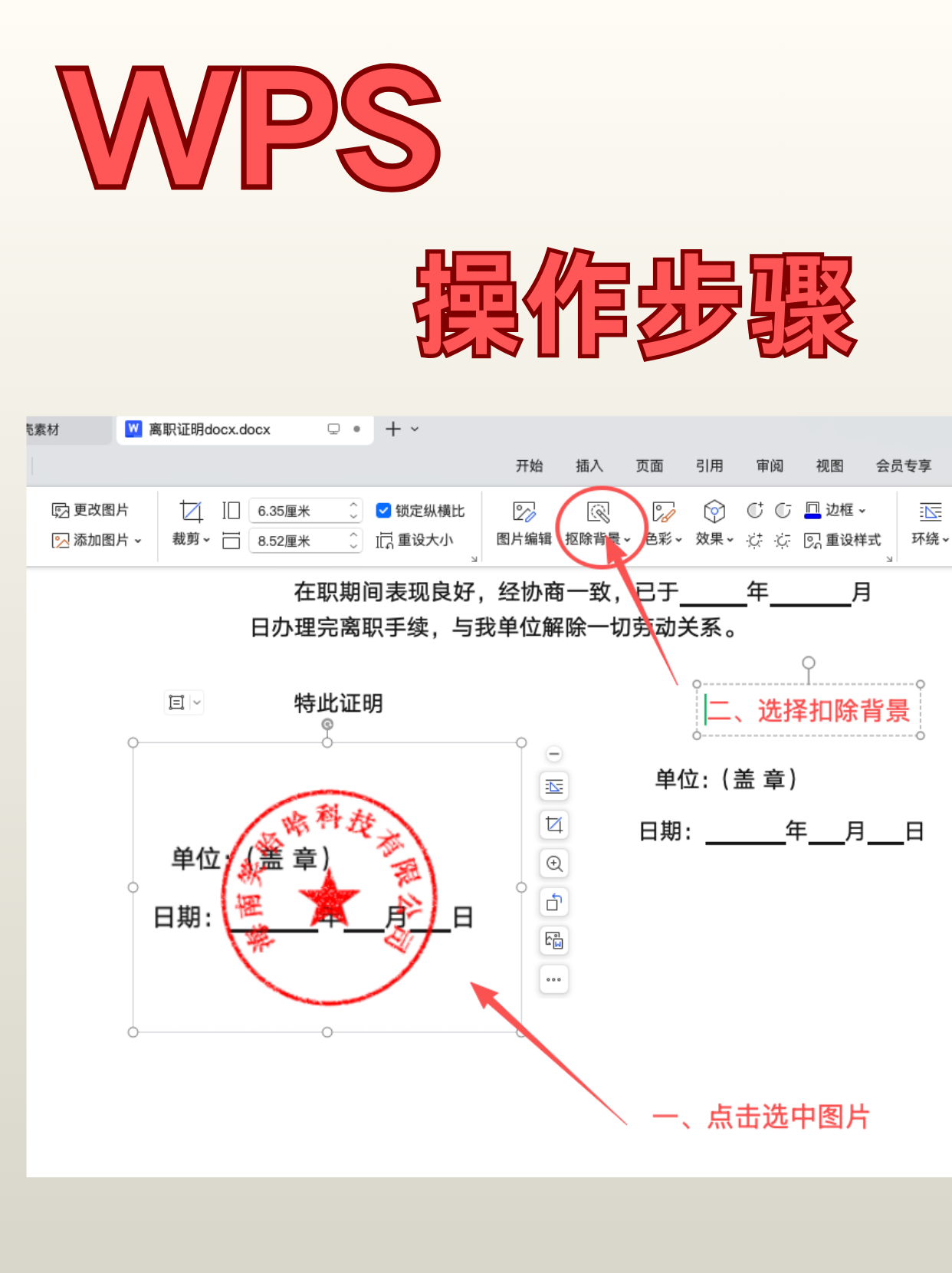 用WPS,点击印章图片,再点击顶部“扣除背景”按钮就可以啦~