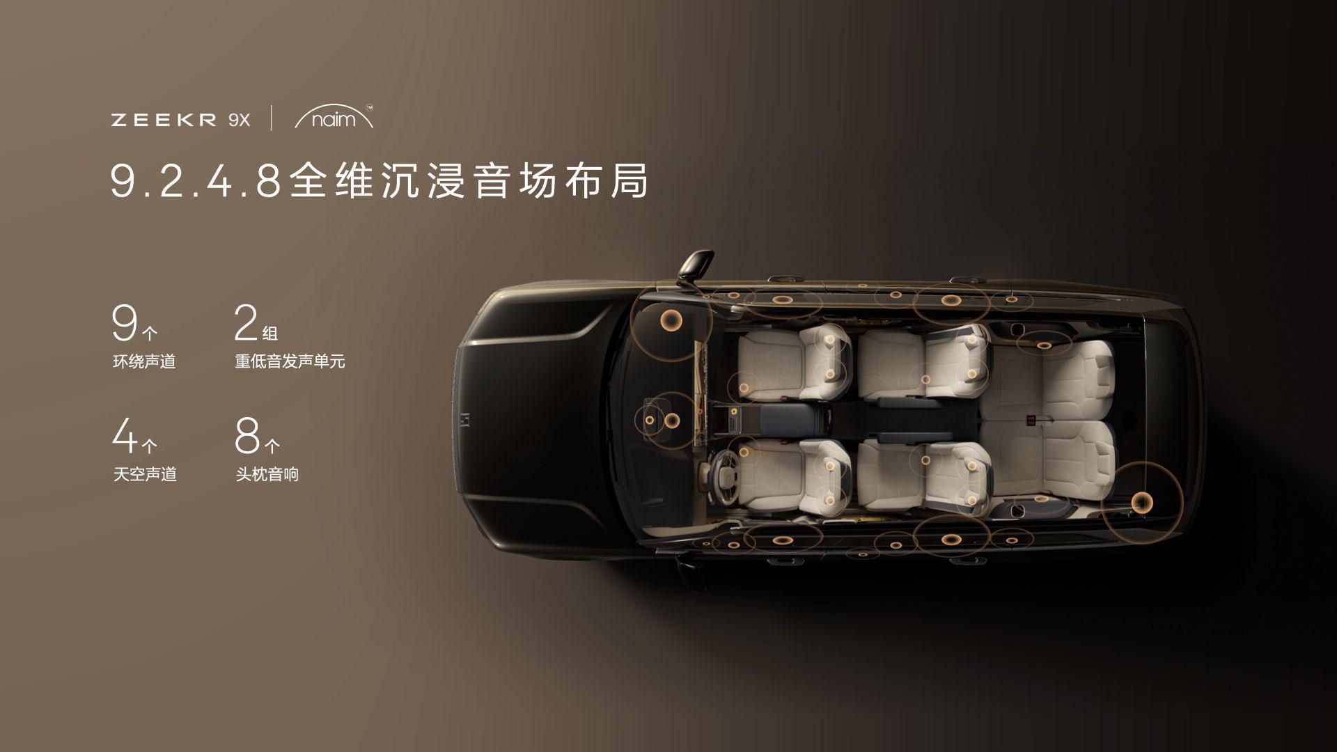 搭载Naim殿堂级音响系统,32扬声器、3868瓦功率,支持杜比全景声。全球首创飞翼式滑移屏,17英寸3K OLED屏可在二三排间滑移88厘米。全车11块隔音玻璃,配备双主动降噪技术。