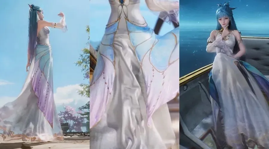 第一套就是海神缘上更换的长纱裙,这是很多粉丝要求的,和小舞五年后的裙子风格差不多。上半身修身,下半身飘逸,衬托得冬儿身材凹凸有致。