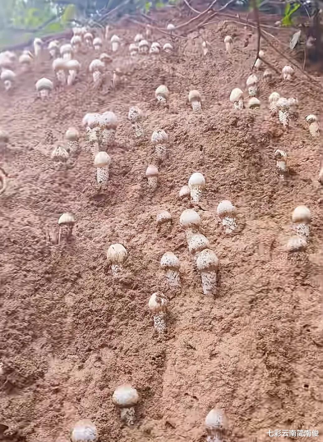 看到这么多鸡枞,云南男子难掩内心喜悦,拍摄记录下现场画面,让人大开眼界,惊叹不已。没想到能够遇到这么多鸡枞菌,高达100朵以上,鸡枞长满坡土,密密集集,蔚然壮观,弥漫浓郁乡土气息。