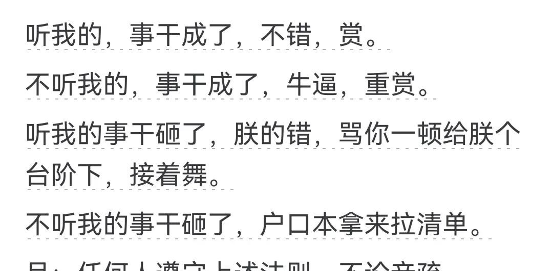 尤其是和珅,无论大家怎么骂他贪污腐败,可别忘了他能在乾隆手底下混到宠臣的位子靠的是什么——听话!事情干得好不好另说,把话说到点子上才是生存之道。这说明什么?乾隆的领导风格讲究功利,重方法轻感情,其实早就埋好了后来的隐患。